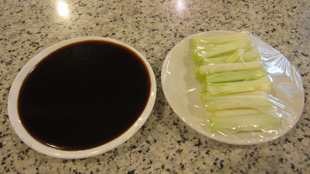 訂位時就有順便訂了烤鴨,所以桌上自然就放了甜麵醬跟蔥